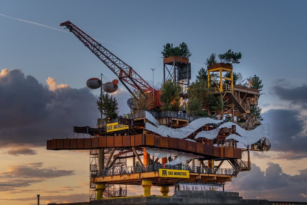 Après son arrivée à Weston-super-Mare, SEE MONSTER, une plate-forme désaffectée de la mer du Nord, a subi sa transformation en