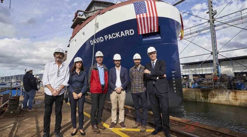 La coque du nouveau navire de recherche phare de MBARI a été lancée au chantier naval de Freire en Espagne.