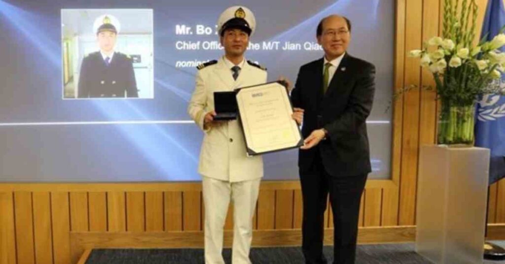 L’officier en chef du pétrolier Bo Xu reçoit le prix de bravoure de l’OMI 2022