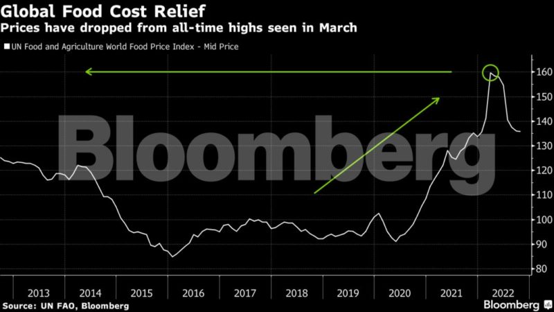 Les expéditions affluent depuis que la Russie a accepté de renouveler un accord pour maintenir ouverts les corridors d’exportation, a déclaré le directeur général David MacLennan dans une interview. Les expéditions supplémentaires contribuent à faire baisser les prix alimentaires mondiaux, qui ont atteint un record en mars après que l’invasion de l’Ukraine par la Russie a étouffé l’approvisionnement d’un producteur clé.
