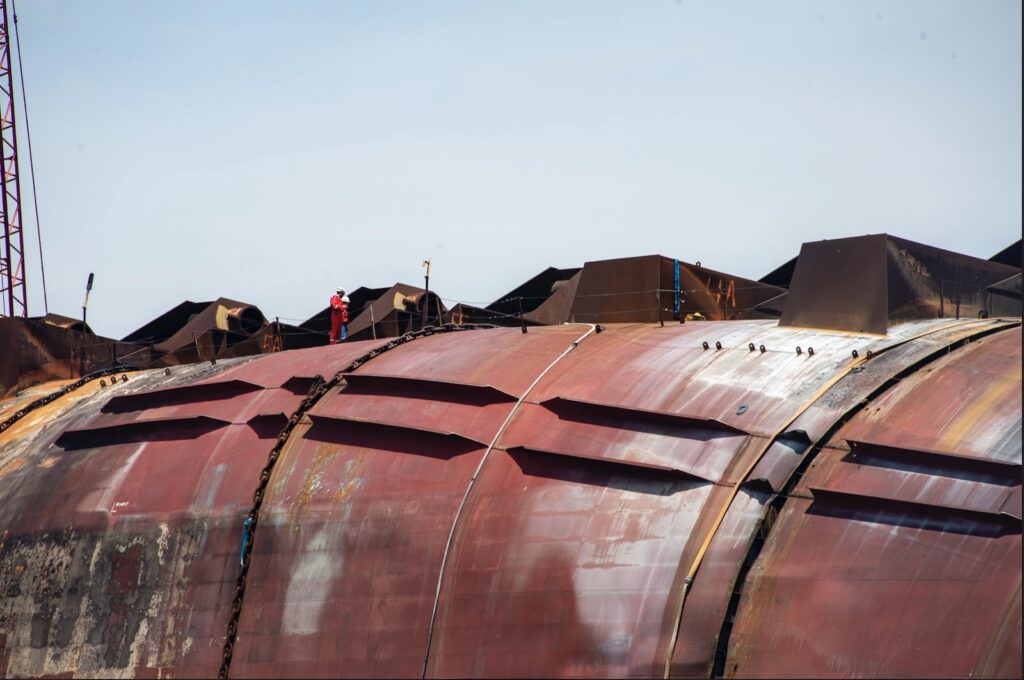 Avant l’incendie, les travailleurs venaient de retirer la section sept, qui contenait la salle des machines du navire et qui s’est avérée être la section la plus difficile à séparer. Actuellement, il reste trois coupes et quatre sections.