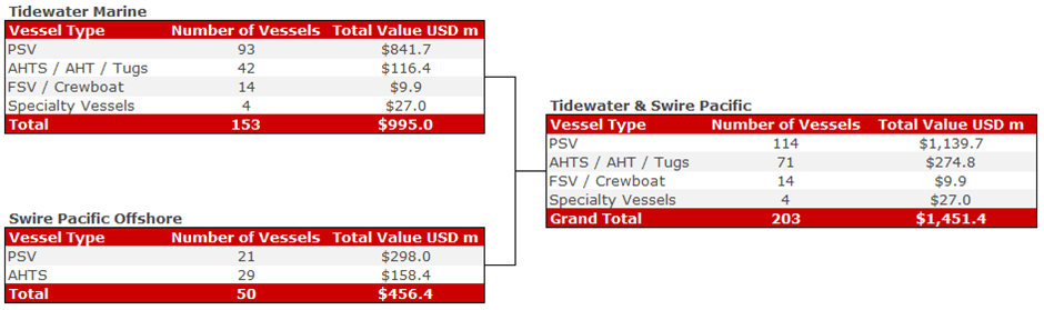 Tidewater a une petite exposition au grand marché AHTS, avec cinq navires entre 13 000 BHP et 16 000 BHP, dont la majorité travaille en Afrique de l’Ouest. L’achat de SPO leur donnera accès aux très grands manipulateurs d’ancres de classe D très respectés de Swire, modernes, jeunes et à traction élevée. Encore une fois, le vaste marché des AHTS a récemment connu un fort resserrement et les candidats à la vente et à l’achat sont limités. Du côté de l’affrètement, les taux élevés d’AHTS se raffermissent et ils sont très demandés à la fois par le secteur des énergies renouvelables et du pétrole et du gaz.