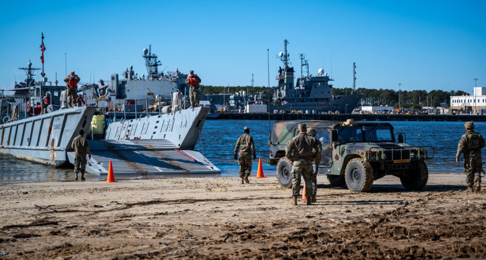 Image vedette : Des soldats de l’armée américaine du 10e bataillon de transport (Terminal) affectés à la base commune Langley-Eustis se préparent à charger un Humvee sur une péniche de débarquement mécanisée (LCM) au cours d’une formation logistique sur le rivage (LOTS) à la base expéditionnaire conjointe -Petit Ruisseau. (Photo de l’US Air Force par l’Aviateur Senior Anthony Nin Leclerec)