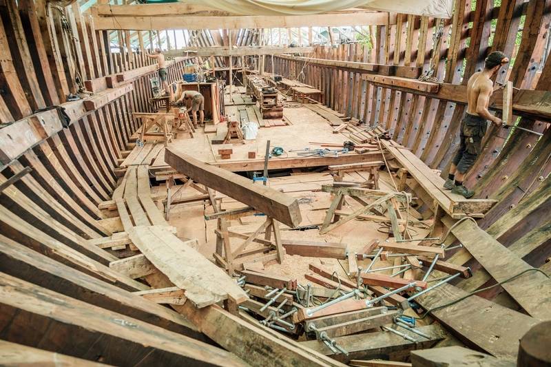 Bien que la logistique du déplacement des matériaux soit lourde, Doggett a déclaré que le fait d’embarquer des gens à bord de ce projet de construction de navires traditionnel n’a pas été un problème. « Nous sommes extrêmement reconnaissants et chanceux qu’en tant que plus grand constructeur de navires traditionnels connus au monde, nous n’ayons pas à chercher beaucoup de talent », a-t-elle déclaré. « Nous recevons quotidiennement des candidatures de personnes du monde entier souhaitant travailler avec nous, et notre jeune chantier naval a déjà participé à 27 pays différents. »