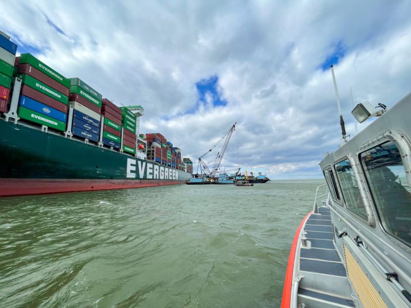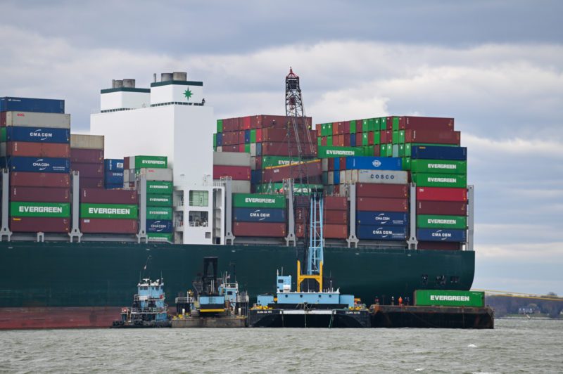 Les conteneurs ont commencé à sortir de l’Ever Forward au cours du week-end au milieu des efforts continus pour alléger et renflouer le navire dans la baie de Chesapeake.