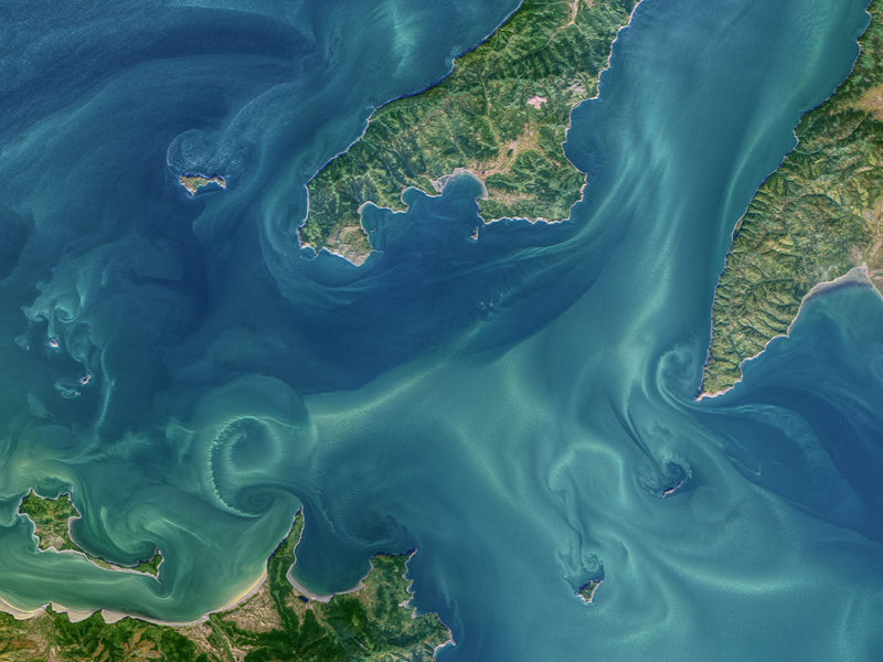 La transition d’un écoulement laminaire régulier à un écoulement mixte et turbulent est visible sur cette image aux couleurs naturelles de l’ouest de la mer d’Okhotsk. L’image des îles Shantar et de la baie d’Uda a été acquise le 24 septembre 2021 par l’Operational Land Imager (OLI) sur Landsat 8.