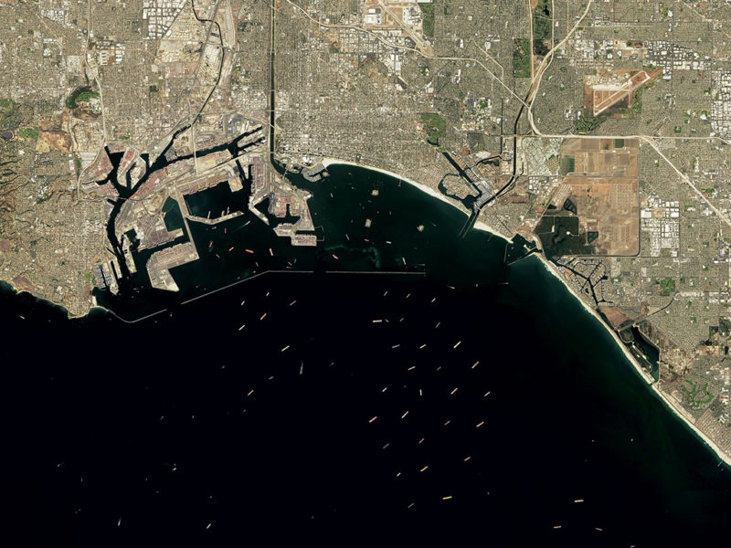 L’explosion de la demande de biens de consommation, les pénuries de main-d’œuvre, le mauvais temps et une série de problèmes de chaîne d’approvisionnement liés au COVID ont contribué aux arriérés de cargos dans les ports du monde entier en 2021. Le 10 octobre, l’Operational Land Imager (OLI) sur Landsat 8 a capturé cette image aux couleurs naturelles de dizaines de cargos attendant au large leur tour pour décharger des marchandises près des ports de Los Angeles et de Long Beach en Californie du Sud, les deux ports à conteneurs les plus fréquentés des États-Unis. Les embouteillages maritimes ne se limitaient pas à Los Angeles, ni même aux États-Unis. Les ports de Malaisie, de Singapour, de Hong Kong et de Shanghai avaient tous des files d’attente de porte-conteneurs attendant au large à divers moments de l’année, selon des sources d’information.
