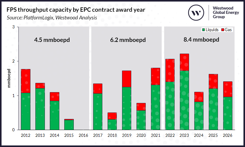 Cela représente une augmentation de 7% par rapport à 2021, Westwood prévoyant une capacité de débit FPS supplémentaire de 180 kboepd à sanctionner avant la fin de l’année.