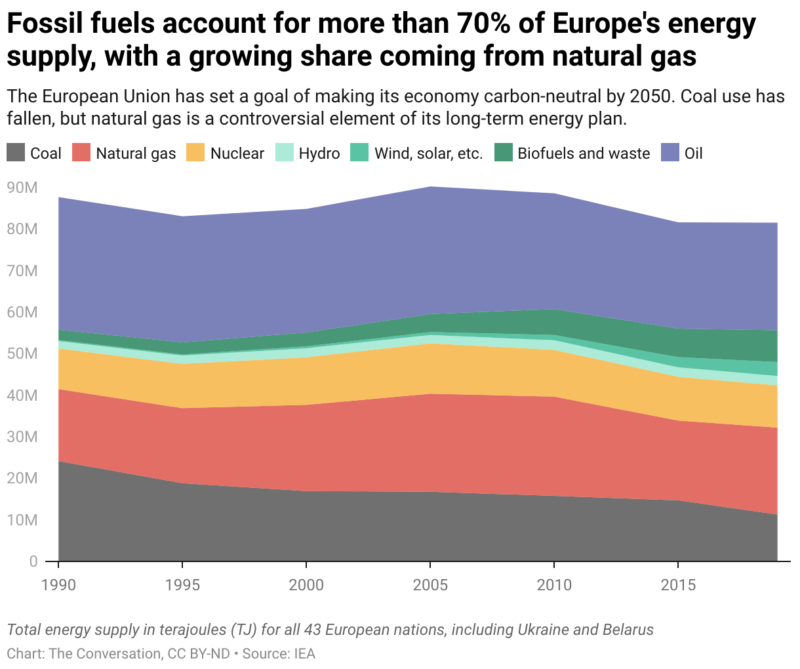 Le gaz naturel représente environ un cinquième de toute l’énergie primaire utilisée en Europe. Il représente environ 20 % de la production d’électricité et est également utilisé pour le chauffage et les processus industriels.