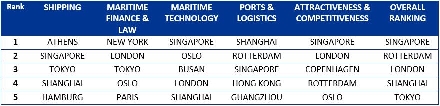 Singapour a conservé la première place du rapport Leading Maritime Cities (LMC) réalisé par la société de classification norvégienne DNV et le cabinet de conseil norvégien Menon Economics AS.