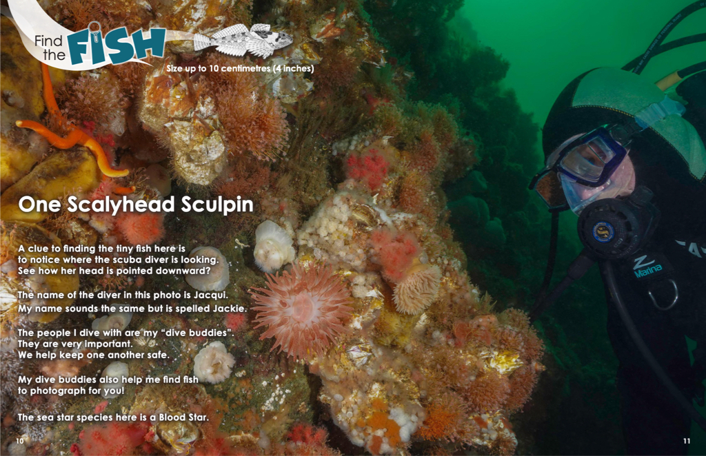 Je suis très heureux que ce troisième livre en particulier permette de réunir les facettes de ma vie – la plongée, la photographie, la recherche sur les baleines et l’enseignement. j’ose dire Trouver le poisson – Volume trois est le seul livre pour enfants qui donne un aperçu de la diversité de la vie au large de nos côtes tout en fournissant également un contenu scientifique stimulant sur le syndrome de dépérissement de l’étoile de mer et nos recherches de la Marine Education & Research Society sur une nouvelle stratégie d’alimentation des baleines à bosse.
