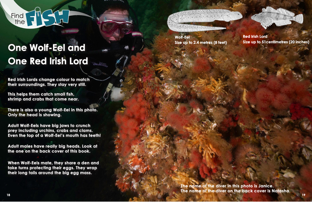 Les livres sont le « Où est Waldo » du monde marin. En plus d’être amusants, ils visent à accroître les connaissances sur la diversité et la couleur de la vie dans ces eaux froides et sombres. Le texte renseigne sur les espèces des images et invite les enfants (et les adultes qui les aiment) à rechercher d’autres espèces en plus des poissons présentés.